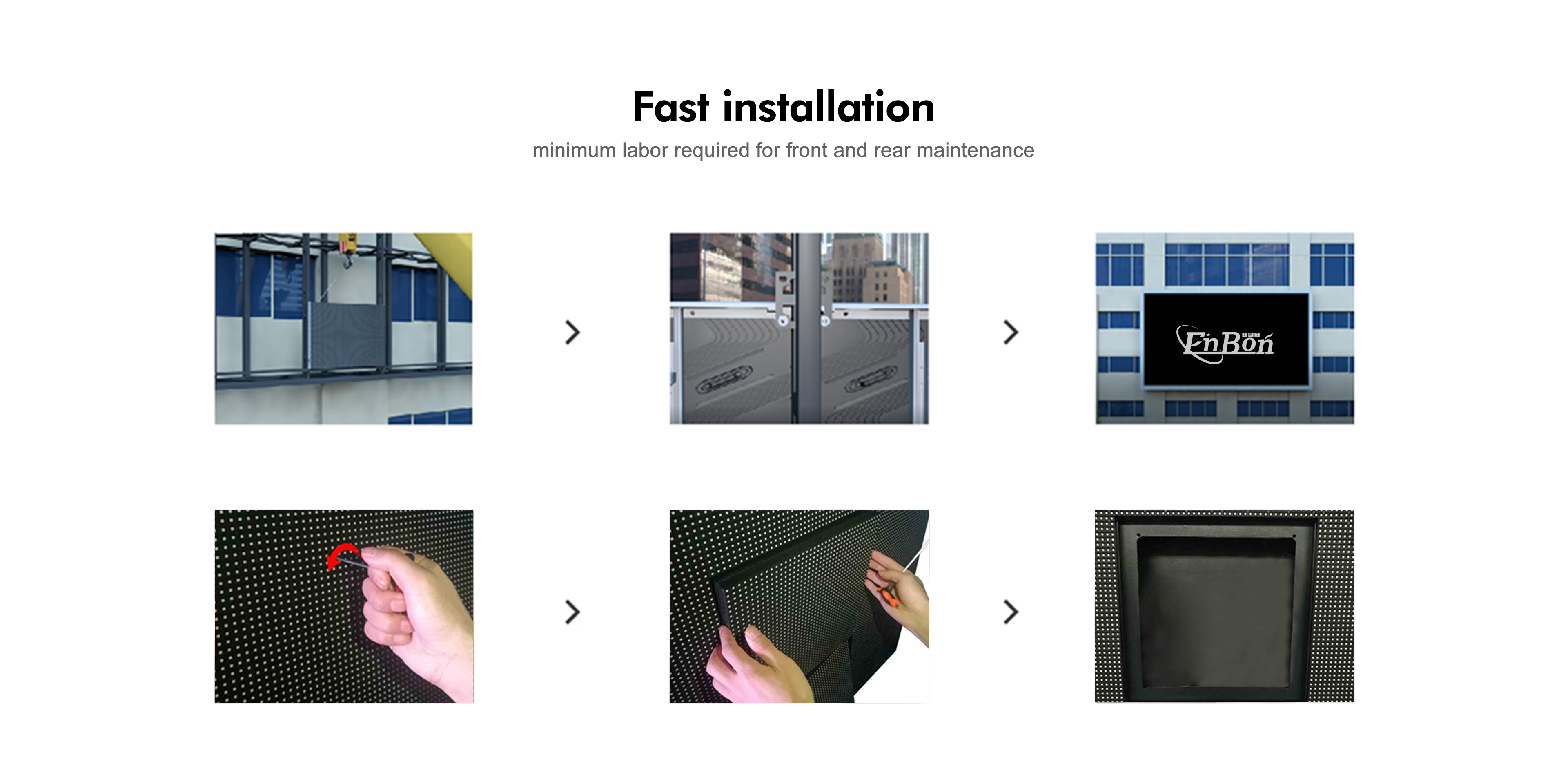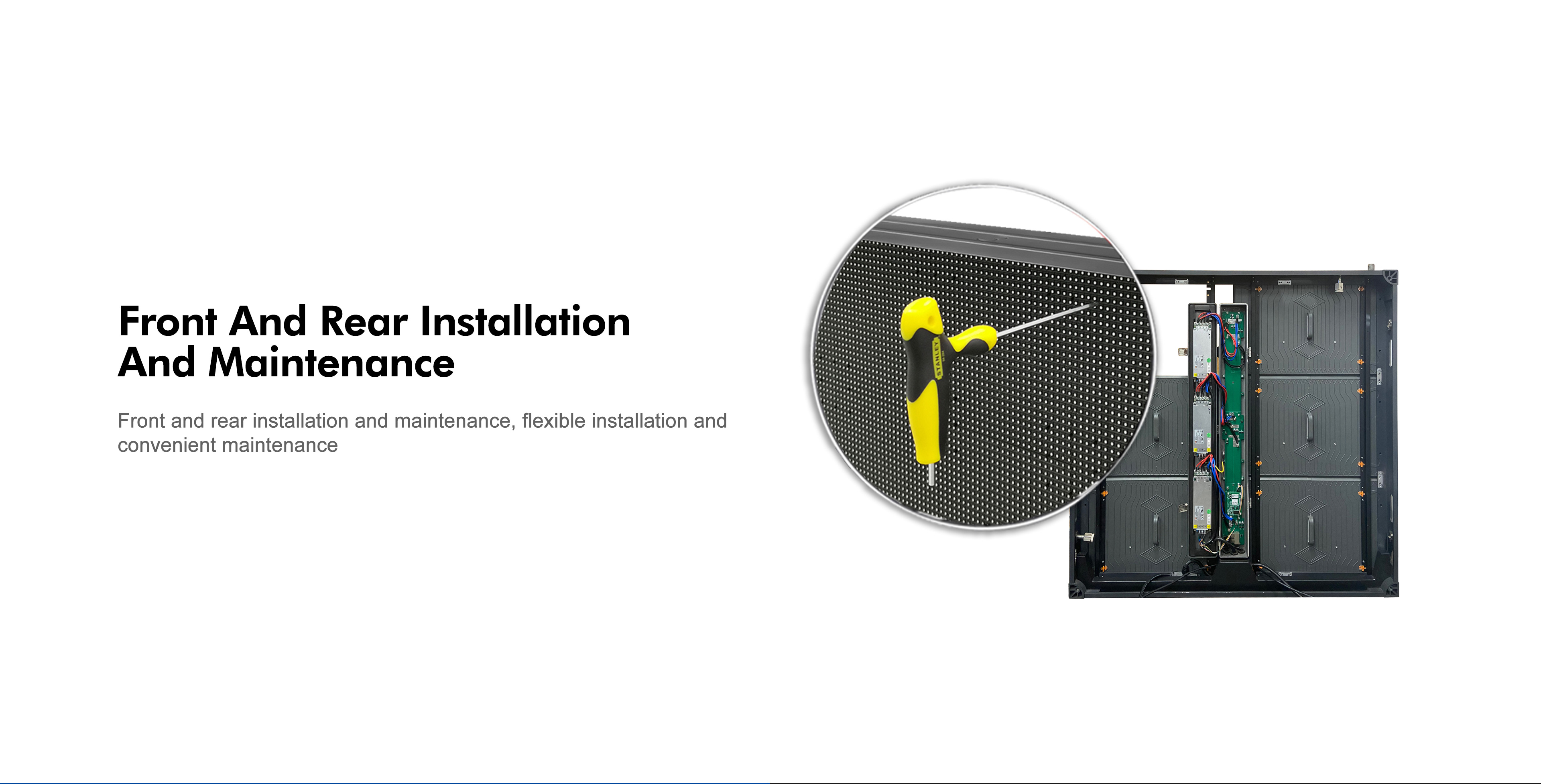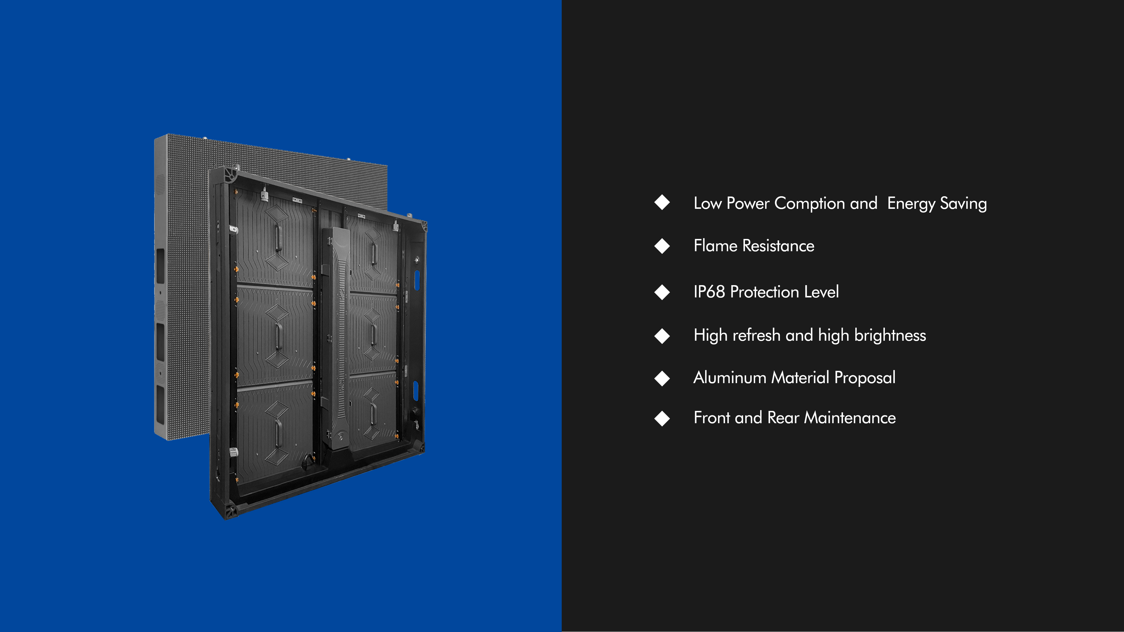 التثبيت الخارجي الثابت ، خزانة ووحدات الألمنيوم ، توفير طاقة الكاثود المشترك ، الخدمة الأمامية والخلفية - تسليط الضوء تمامًا وتصميم التحديث العالي ، يمكن استخدامها لجدار فيديو كبير بتصميم ثلاثي الأبعاد.