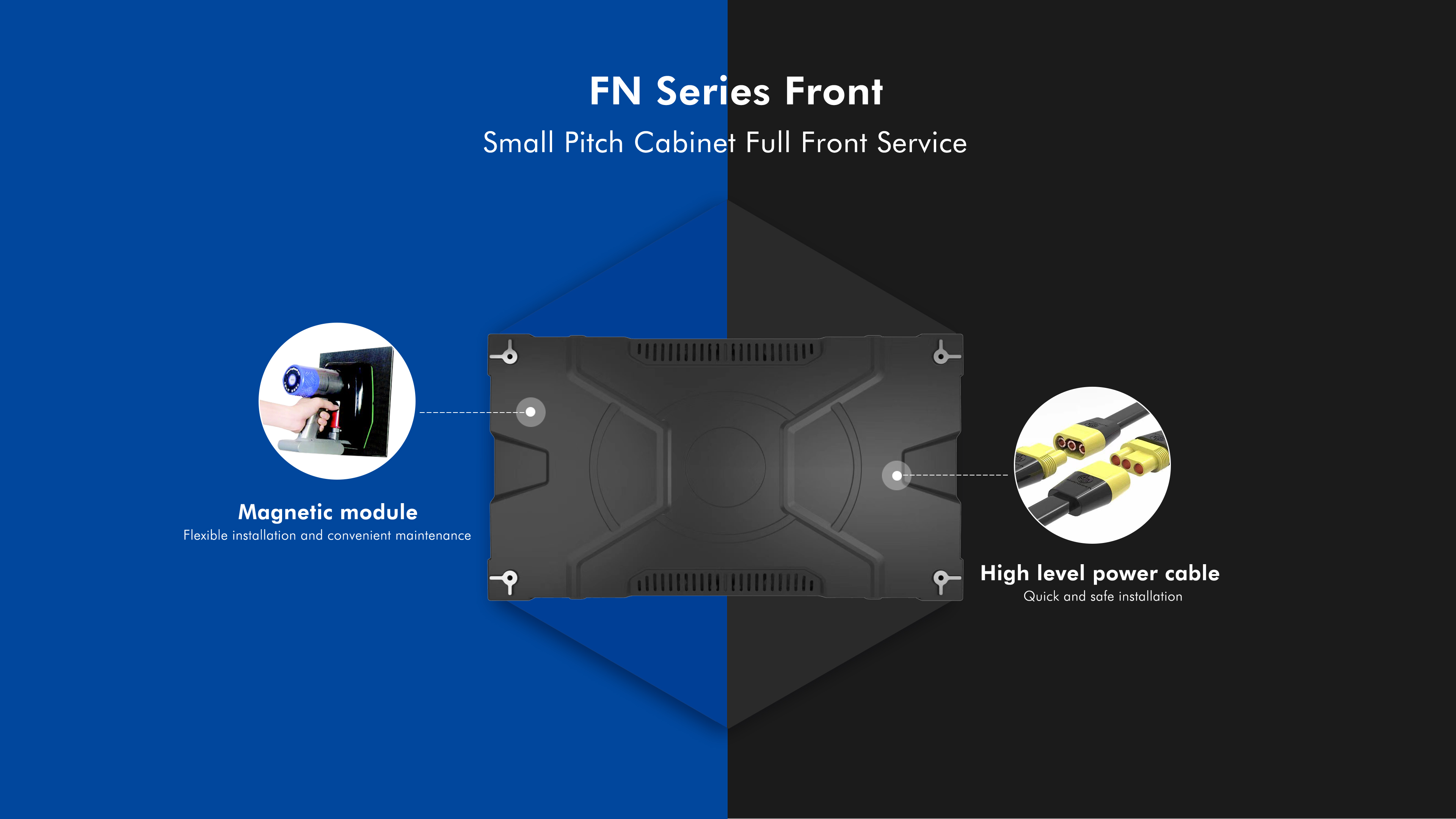 Pantalla fija de paso fino de la serie FN de Enbon, paso de píxel ultrapequeño. Diseño de gabinete liviano, extremadamente delgado. fácil mantenimiento e instalación sin cables. empalme perfecto con una relación de panel perfecta de 16:9. amplia gama de aplicaciones para conferencias de negocios
