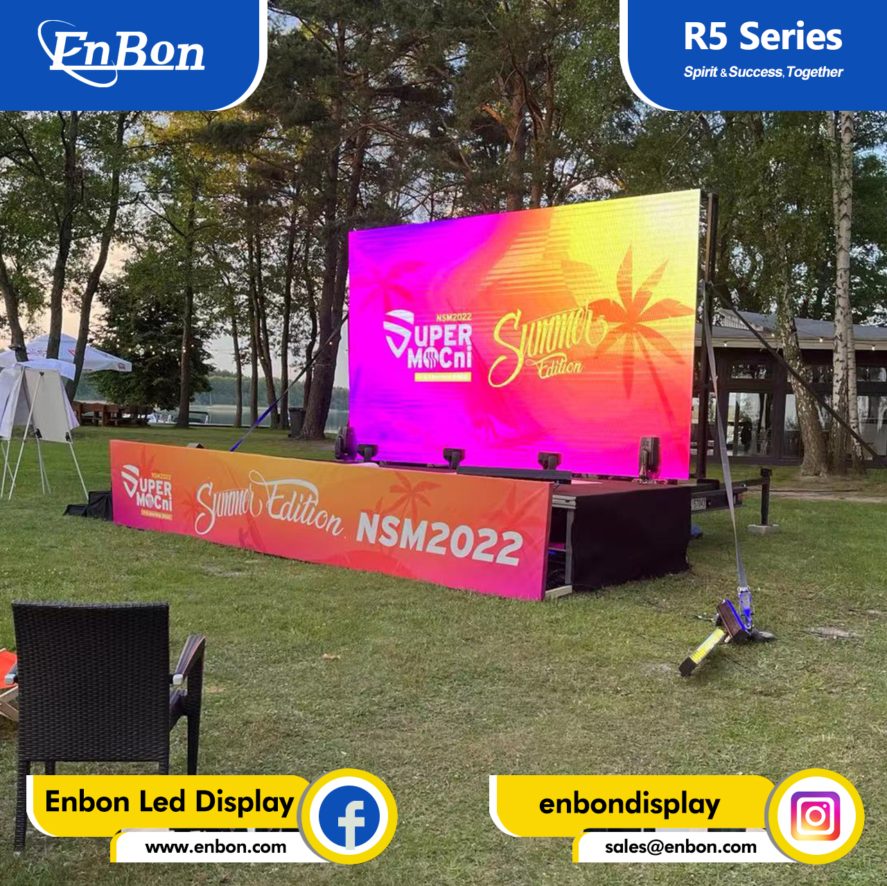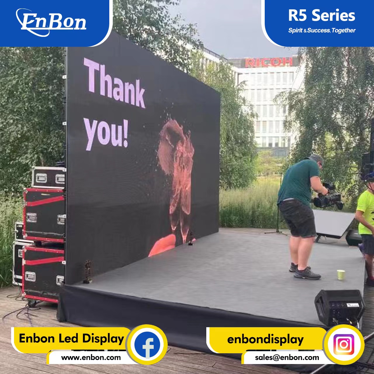 Enbon R5シリーズのレンタルスクリーンです。軽量設計で簡単に移動でき、人間工学に基づいた設計で素早く設置してメンテナンスできます。ダブルクイックロックと統合電源設計により、毎日の使用がより便利で安全になります。 R5シリーズは、同タイプのスクリーンに比べて軽量・薄型で、独自のモジュラー設計により使用時に左右に移動する必要がありません。同じ HUB であらゆる種類のピクセルを使用でき、より優れた表示効果を生み出すことができます。視野角が広く、反射がないので、ステージ効果が向上します。耐久性もR5シリーズの利点の1つであり、長期的な顧客にとっては、R5シリーズは絶対に最良の選択です.