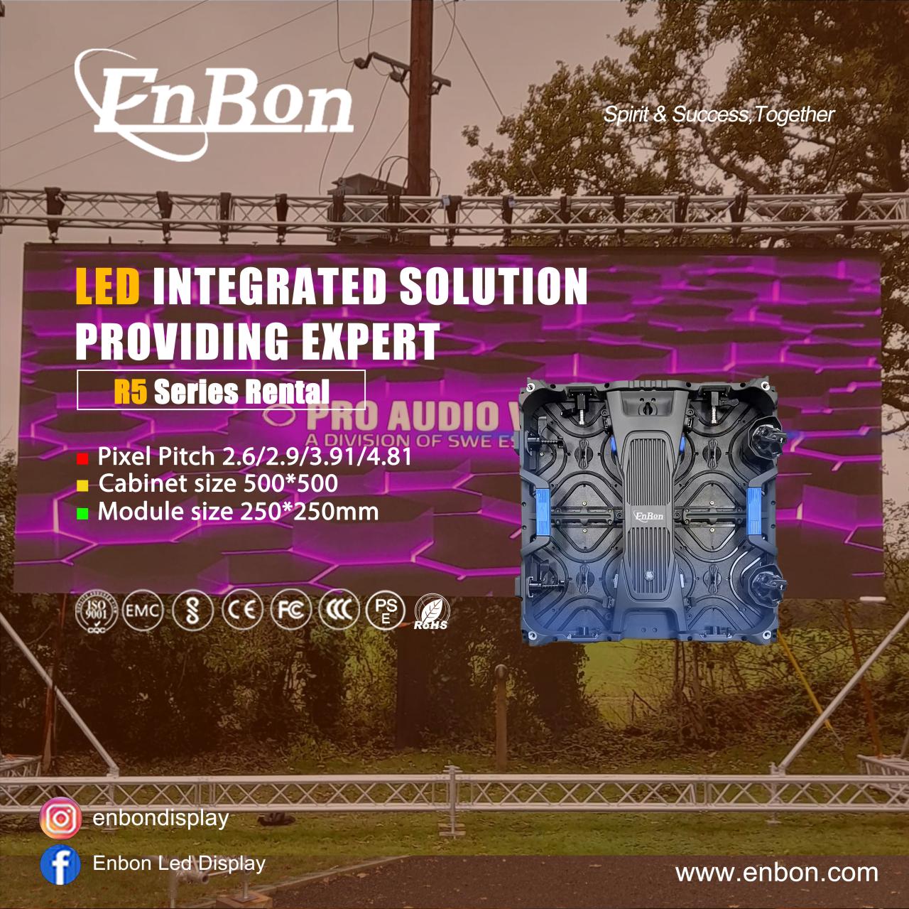 Enbon R5 series rental screens. Lightweight design allows you to move easily, Ergonomic design allows you to quickly install and maintain. Double quick lock and integrated power supply design make daily use more convenient and safe. Compared with the same type of screen, the R5 series is lighter and thinner, Its unique modular design makes it unnecessary to move left and right in use. Same HUB could useing all kinds of pixel, It can create a better display effect. Wide viewing angle and no reflection make its stage effect better. Durability is also one of the advantages of R5 series, For long-term customers, R5 series is absolutely the best choice.