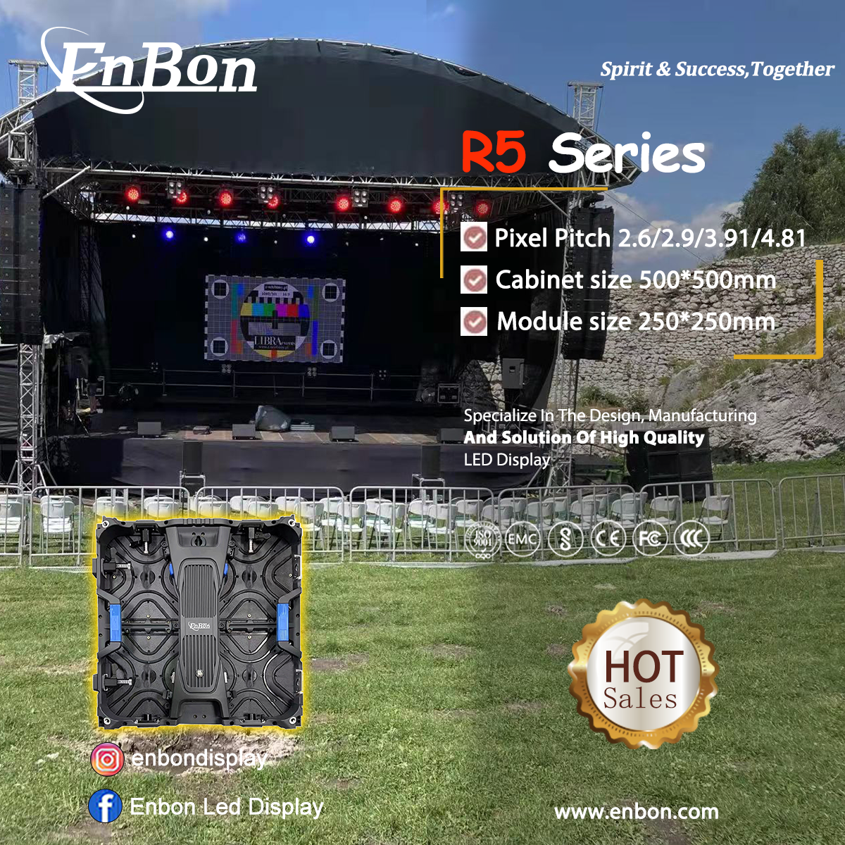 Enbon R5 series rental screens. Lightweight design allows you to move easily, Ergonomic design allows you to quickly install and maintain. Double quick lock and integrated power supply design make daily use more convenient and safe. Compared with the same type of screen, the R5 series is lighter and thinner, Its unique modular design makes it unnecessary to move left and right in use. Same HUB could useing all kinds of pixel, It can create a better display effect. Wide viewing angle and no reflection make its stage effect better. Durability is also one of the advantages of R5 series, For long-term customers, R5 series is absolutely the best choice.