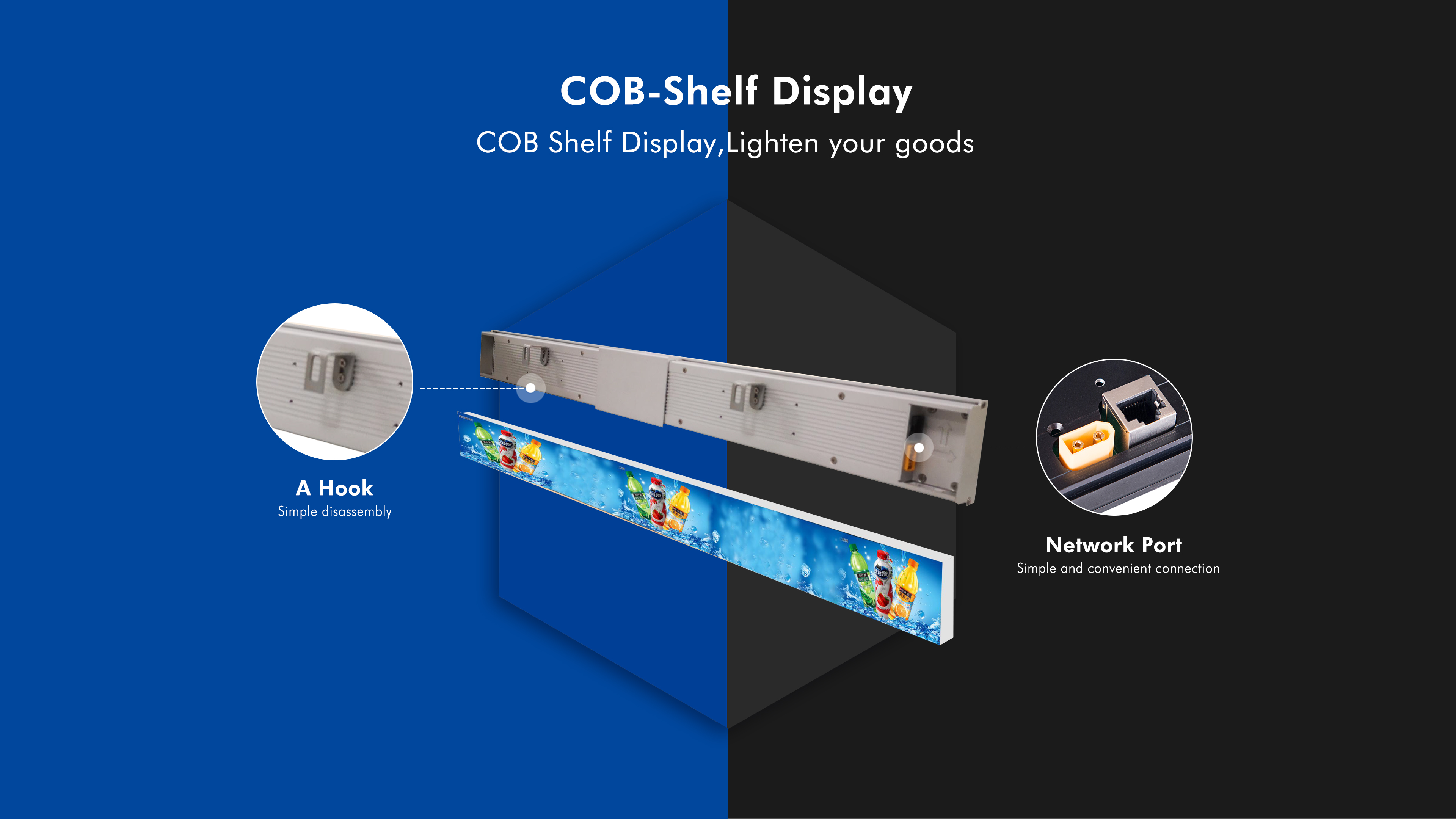 The Shelf designed by the Enbon team has different sizes such as 300mm, 600mm, 900mm, etc, and is widely used in supermarket shelf screens. Due to the unique characteristics of Enbon's COB products, such as waterproof, high temperature and low temperature resistance, they are currently very popular in the market and are exported. Europe and America.