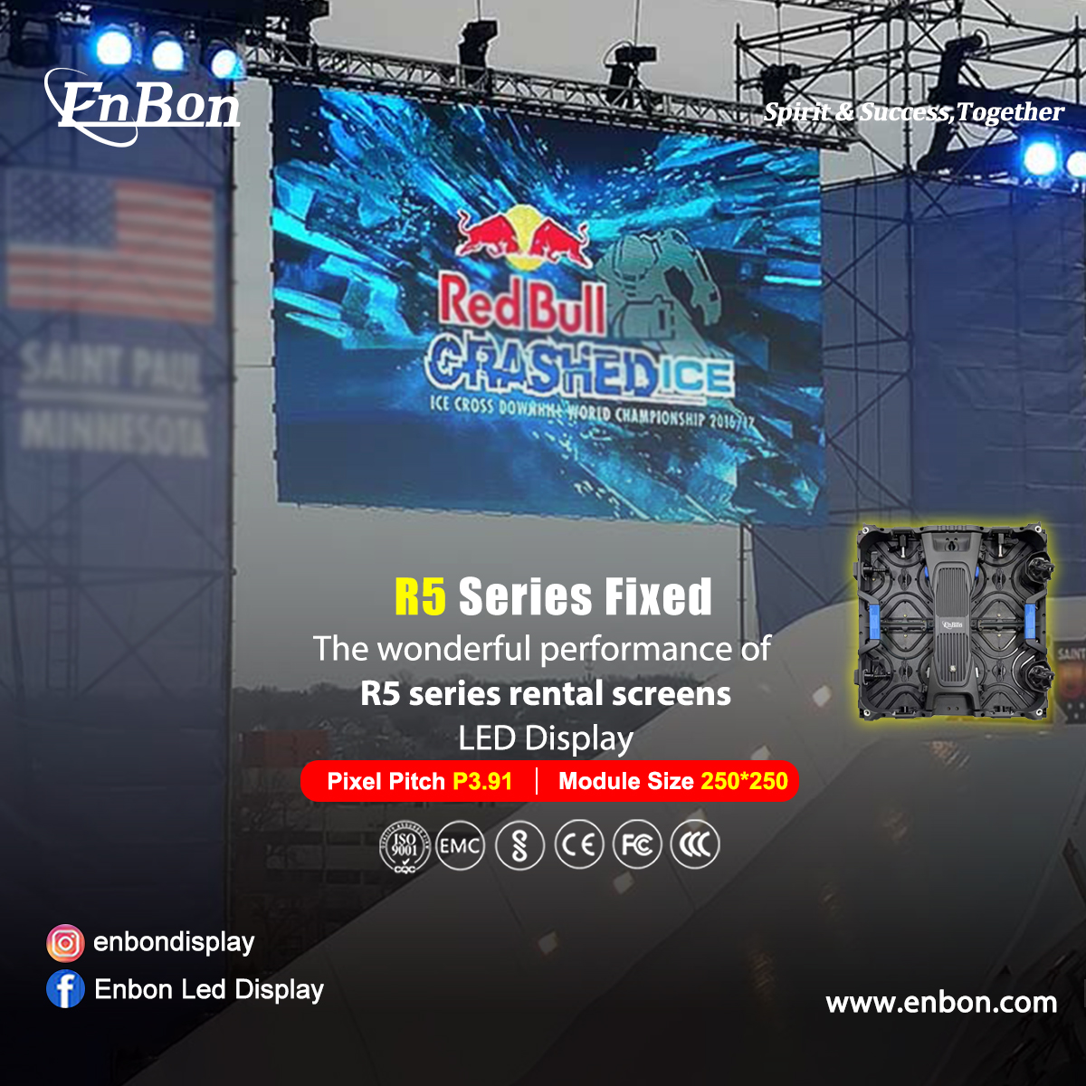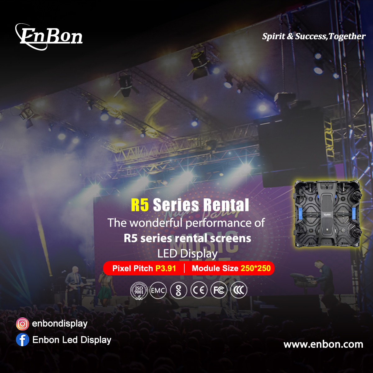Telas de aluguel da série Enbon R5. O design leve permite que você se mova facilmente, o design ergonômico permite que você instale e mantenha rapidamente. O duplo bloqueio rápido e o design de fonte de alimentação integrado tornam o uso diário mais conveniente e seguro. Comparado com o mesmo tipo de tela, a série R5 é mais leve e mais fina, seu design modular exclusivo torna desnecessário mover para a esquerda e para a direita em uso. O mesmo HUB pode usar todos os tipos de pixel, pode criar um melhor efeito de exibição. Ângulo de visão amplo e sem reflexão tornam seu efeito de palco melhor. A durabilidade também é uma das vantagens da série R5, para clientes de longo prazo, a série R5 é absolutamente a melhor escolha.